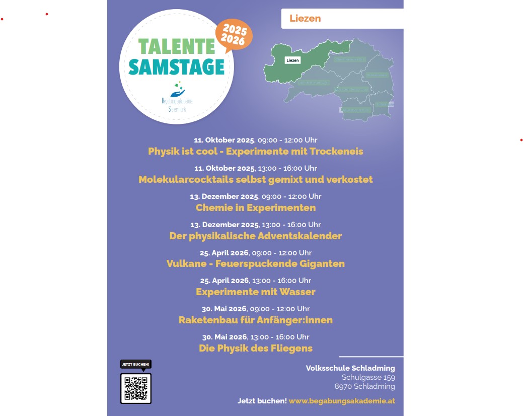 Am Samstag, 13.12.2025 sind ExpertInnen der Begabungsakademie mit zwei interessanten Workshops an der VS Schladming.
