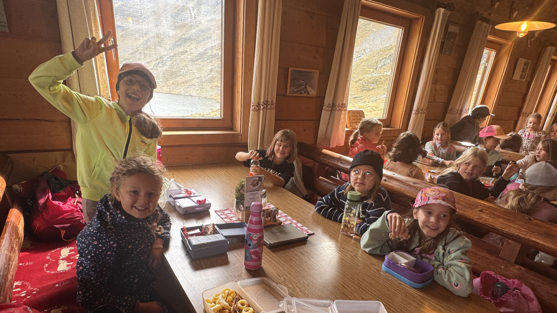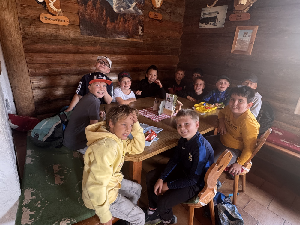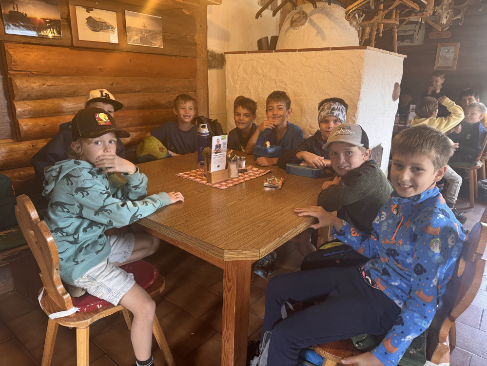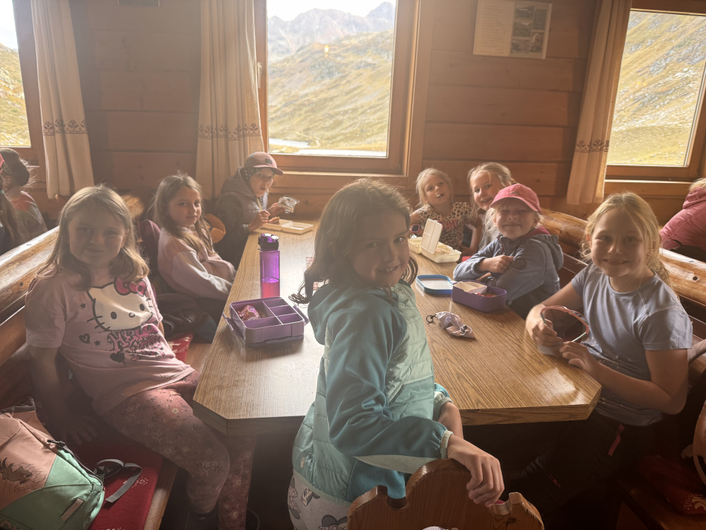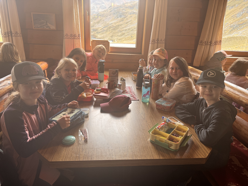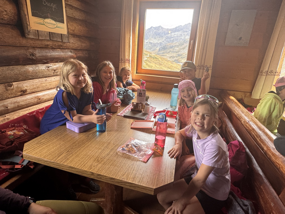 Oben angekommen, bot sich ihnen eine atemberaubende Aussicht auf die gewaltige Berglandschaft. Dank der Gastfreundschaft der Familie Pekoll konnten wir unsere Jause in der gemütlichen Giglachseehütte genießen.
