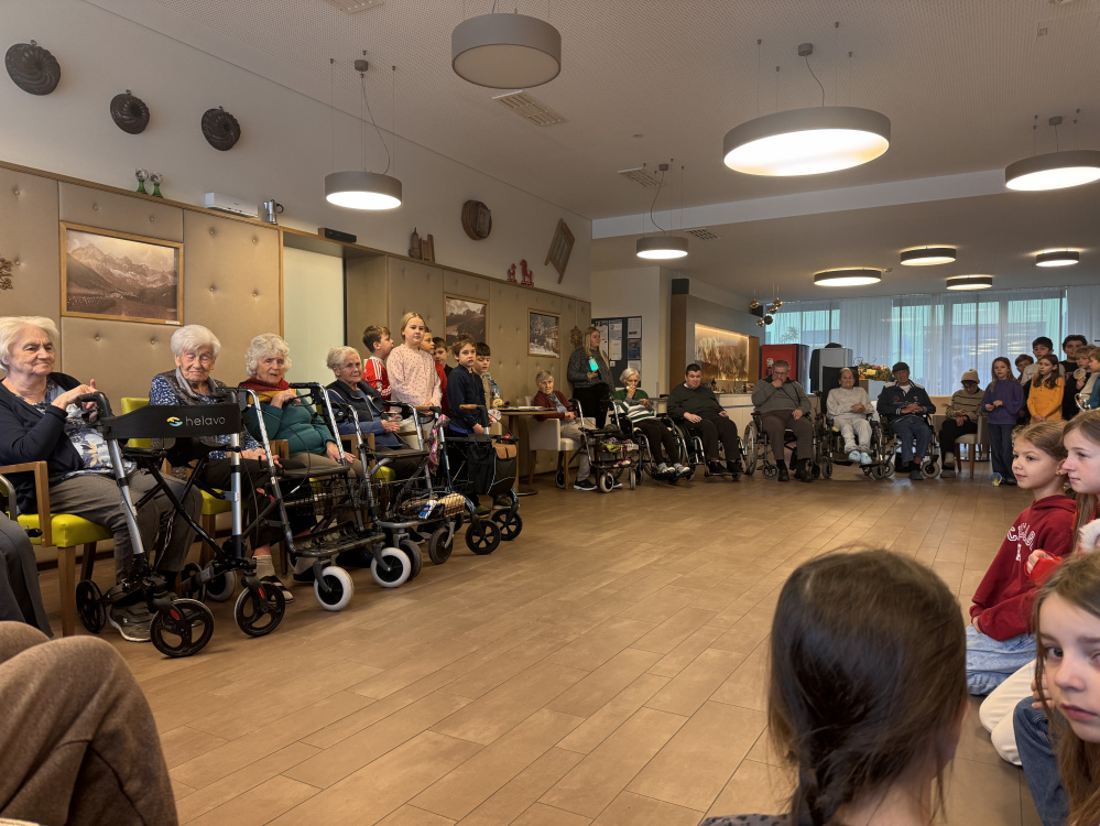 Die 3. Klassen der Volksschule Schladming überbrachten diese Grüße persönlich in die Häuser „Unter den Linden“, „SeneCura“ sowie ins „Bezirksaltenheim“. Mit gemeinsamen Weihnachtsliedern und musikalischen Darbietungen auf ihren Instrumenten sorgten die Kinder für eine besonders stimmungsvolle Atmosphäre.