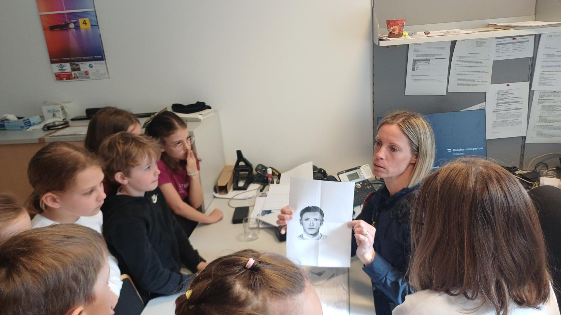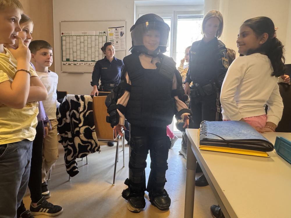 Am zweiten Tag durften wir den Polizeiposten besuchen. Dort konnten wir sehen, wie die Polizei arbeitet, und bekamen einen Einblick in die Ausrüstung und die Fahrzeuge. Besonders interessant war es, die verschiedenen Räume kennenzulernen und zu erfahren, was im Alltag der Polizei alles passiert.