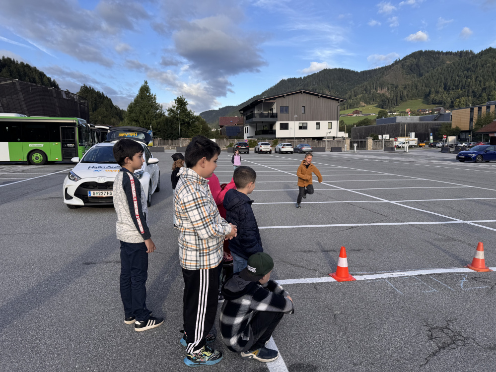 Die Kinder der dritten Klassen hatten in der 2.Woche bereits die Chance im Zuge dieser Aktion vieles über die Verkehrssituation und den Bremsweg eines Fahrzeuges zu lernen.